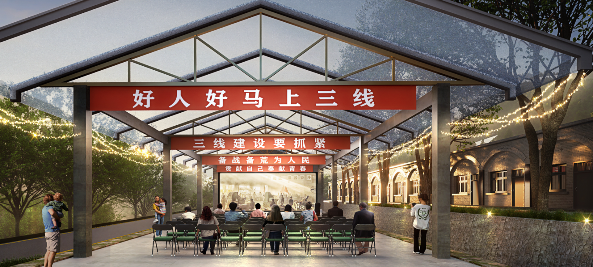 The Baoji Weibin Shangchuan Village No. 6 Project is located in Chaoyu, the first valley of the Qinling Mountains. The current "No. 6 Project" was once the site of the Baoji City Archives and was founded in 1968. It is a classic representative building of modern times in Weibin District. The base is approximately 350 meters long from east to west, 45 meters wide from north to south, and covers an area of approximately 15750 square meters. The design focuses on the value of the project itself, with the aim of immersive experience. With the theme of third line construction, it is positioned as the first "archive culture" creative park in the country, injecting new cultural characteristics into the "Chaoyu Rural Tourism Complex"。